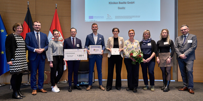 - Erschienen am - PresemitteilungOb mit innovativen Lehrmethoden, praxisnahen Erfahrungen oder der Möglichkeit zur aktiven Mitgestaltung – der Brandenburger Ausbildungspreis zeichnet jedes Jahr Betriebe aus, die sich vorbildlich für die Ausbildung von jungen Menschen einsetzen. In verschiedenen Kategorien erhielten heute elf Unternehmen den diesjährigen Preis in Potsdam. Sozial- und Gesundheitsstaatsekretär Patrick Wahl verlieh den Preis in der Kategorie „Pflege- und Gesundheitsfachberufe“ an die Beelitz Kliniken GmbH, die verschiedene medizinische, pflegerische und therapeutischen Ausbildungen anbietet. Der Preis ist mit 1.000 Euro dotiert und wird in dieser Kategorie vom Ministerium für Gesundheit und Soziales gestiftet.
